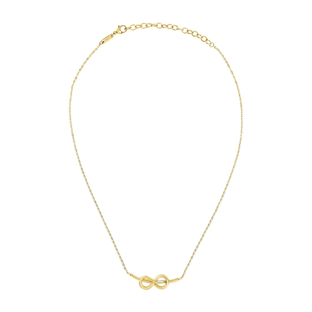 The B&ME Endless Knot necklace is made of polished gold-colored steel and is made up of a thin chain and a central element with a minimal but refined design: a thin ribbon that wraps around itself and creates the infinity symbol, an iconic central element. The necklace is highly symbolic and unisex, perfect for a gift or for yourself.