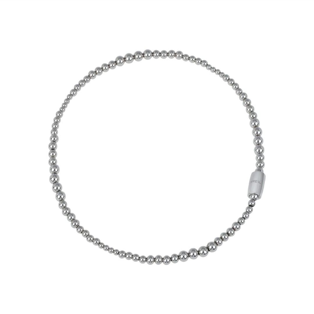 Magnetica System is the jewelry collection that, thanks to its different elements and magnetic closures, can be modified and take on ever-changing shapes and styles. The Moon choker is in polished steel, composed of small spheres of different sizes. It can be worn alone or combined with any other element of the collection, to create new necklaces of different lengths.